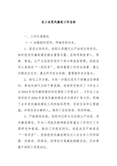 / 【七哥公文】2024年:总工会党风廉政工作总结+更多免费公文+VX:QiGeGongWen2024