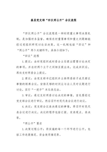 / 【七哥公文】2024年:基层党支部“四仪两公开”会议流程+更多免费公文+VX:QiGeGongWen2024