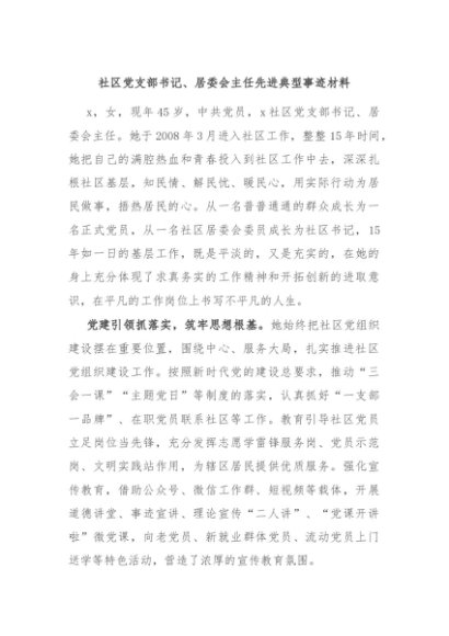 / 【七哥公文】2024年:社区党支部书记、居委会主任先进典型事迹材料+更多免费公文+VX:QiGeGongWen2024