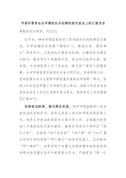 【七哥公文】2024年:市场价管局在全市模范机关创建经验交流会上的汇报发言+更多免费公文+VX:QiGeGongWen2024