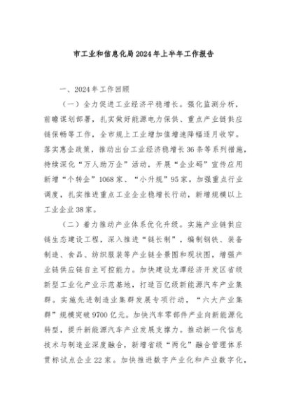 / 【七哥公文】2024年:市工业和信息化局2024年上半年工作报告+更多免费公文+VX:QiGeGongWen2024