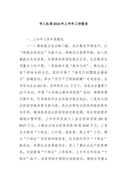 / 【七哥公文】2024年:市人社局2024年上半年工作报告+更多免费公文+VX:QiGeGongWen2024