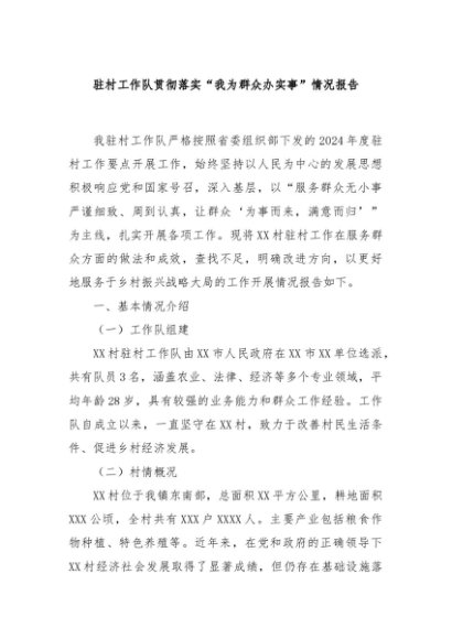/ 【七哥公文】2024年:驻村工作队贯彻落实“我为群众办实事”情况报告+更多免费公文+VX:QiGeGongWen2024
