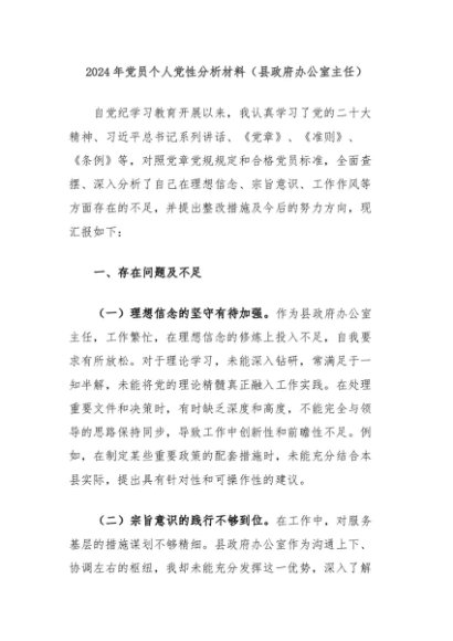 【七哥公文】2024年:2024年党员个人党性分析材料(县政府办公室主任)+更多免费公文+VX:QiGeGongWen2024