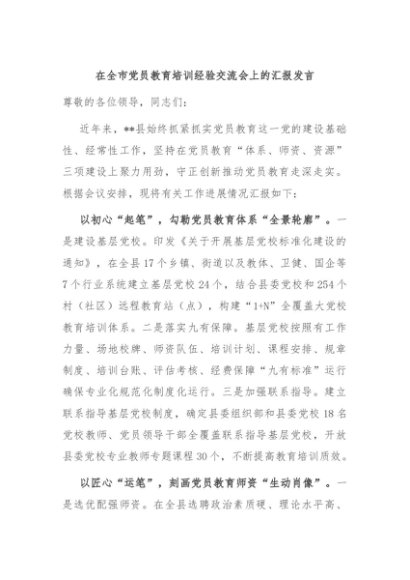 / 【七哥公文】2024年:在全市党员教育培训经验交流会上的汇报发言+更多免费公文+VX:QiGeGongWen2024