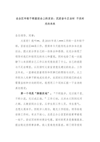 【七哥公文】2024年:在全区年轻干部座谈会上的发言:沉淀奋斗正当时 不负时光向未来+更多免费公文+VX:QiGeGongWen2024
