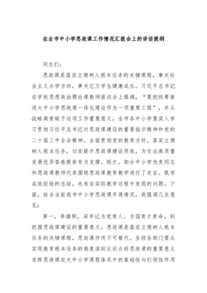 / 【七哥公文】2024年:在全市中小学思政课工作情况汇报会上的讲话提纲+更多免费公文+VX:QiGeGongWen2024