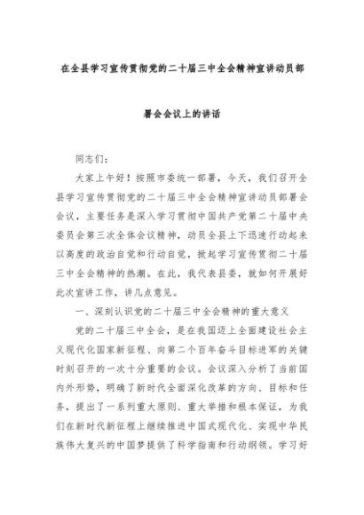【七哥公文】2024年:在全县学习宣传贯彻党的二十届三中全会精神宣讲动员部署会会议上的讲话+更多免费公文+VX:QiGeGongWen2024