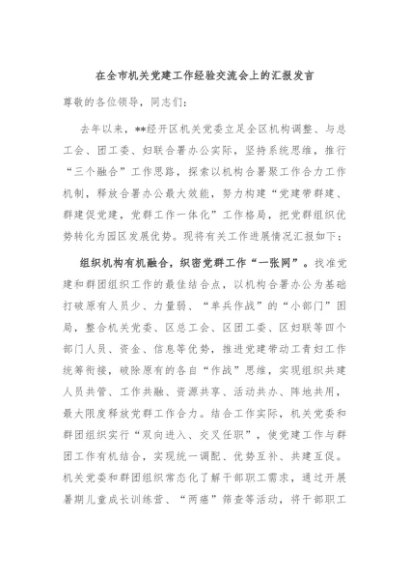 / 【七哥公文】2024年:在全市机关党建工作经验交流会上的汇报发言+更多免费公文+VX:QiGeGongWen2024