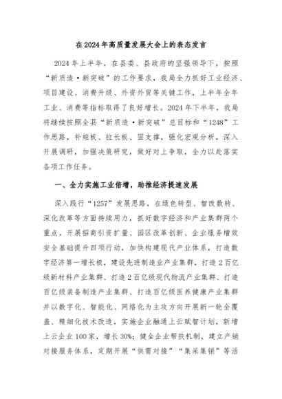 / 【七哥公文】2024年:在2024年高质量发展大会上的表态发言+更多免费公文+VX:QiGeGongWen2024