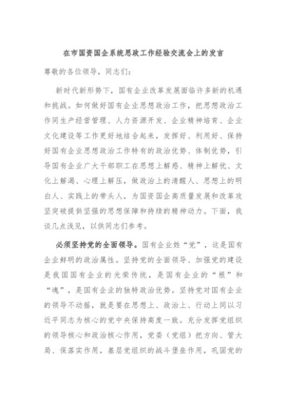 / 【七哥公文】2024年:在市国资国企系统思政工作经验交流会上的发言+更多免费公文+VX:QiGeGongWen2024