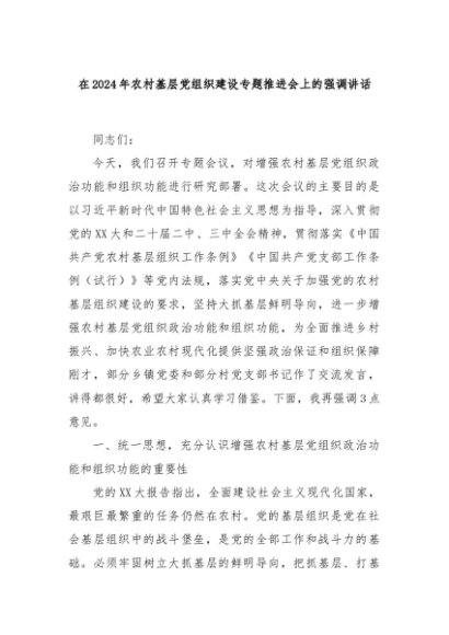 【七哥公文】2024年:在2024年农村基层党组织建设专题推进会上的强调讲话+更多免费公文+VX:QiGeGongWen2024
