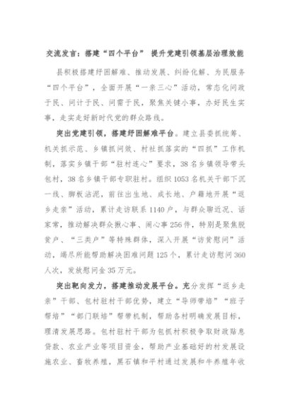 【七哥公文】2024年:交流发言:搭建“四个平台” 提升党建引领基层治理效能+更多免费公文+VX:QiGeGongWen2024