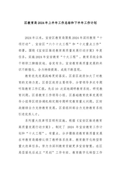/ 【七哥公文】2024年:区教育局2024年上半年工作总结和下半年工作计划+更多免费公文+VX:QiGeGongWen2024