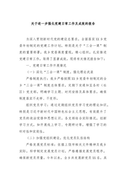 / 【七哥公文】2024年:关于进一步强化党建日常工作及成效的报告+更多免费公文+VX:QiGeGongWen2024