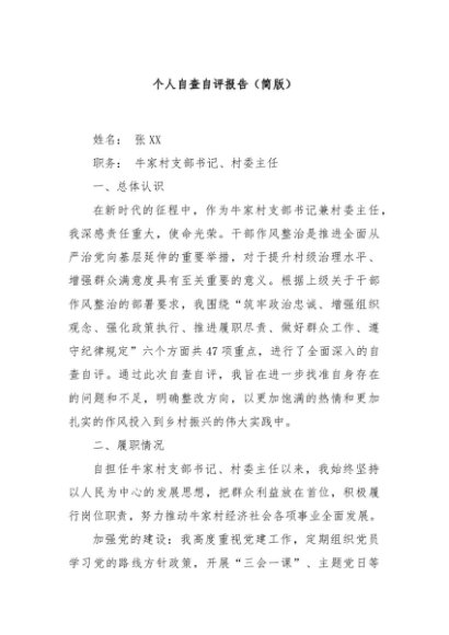 / 【七哥公文】2024年:个人自查自评报告(简版)+更多免费公文+VX:QiGeGongWen2024