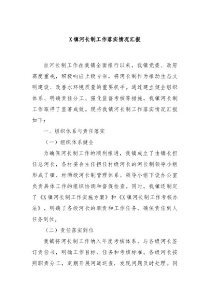 / 【七哥公文】2024年:X镇河长制工作落实情况汇报+更多免费公文+VX:QiGeGongWen2024