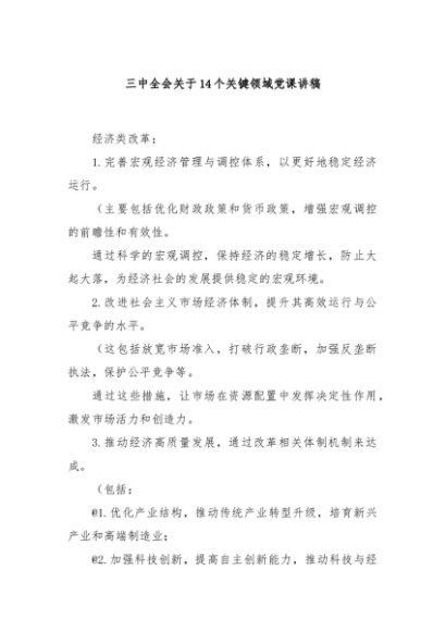 / 【七哥公文】2024年:三中全会关于14个关键领域党课讲稿+更多免费公文+VX:QiGeGongWen2024