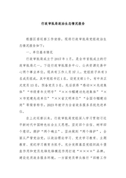/ 【七哥公文】2024年:行政审批局政治生态情况报告+更多免费公文+VX:QiGeGongWen2024