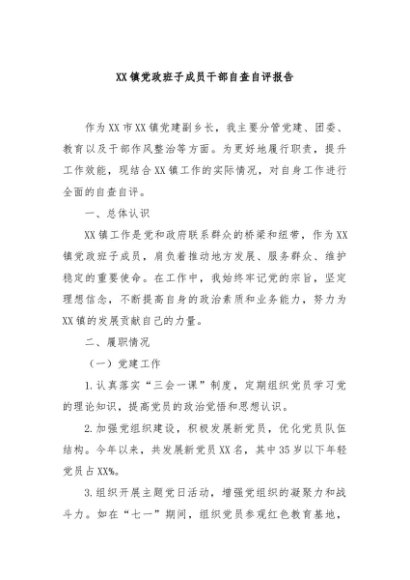 / 【七哥公文】2024年:XX镇党政班子成员干部自查自评报告+更多免费公文+VX:QiGeGongWen2024