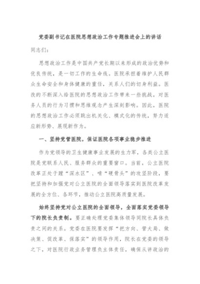 / 【七哥公文】2024年:党委副书记在医院思想政治工作专题推进会上的讲话+更多免费公文+VX:QiGeGongWen2024