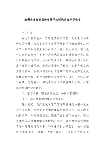 【七哥公文】2024年:选调生参加党员教育骨干培训示范班学习体会+更多免费公文+VX:QiGeGongWen2024