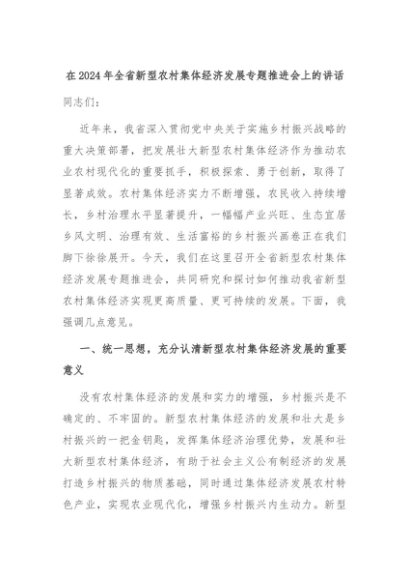 【七哥公文】2024年:在2024年全省新型农村集体经济发展专题推进会上的讲话+更多免费公文+VX:QiGeGongWen2024