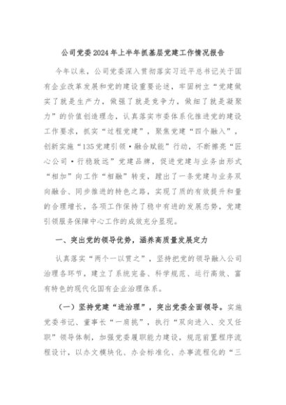 / 【七哥公文】2024年:公司党委2024年上半年抓基层党建工作情况报告+更多免费公文+VX:QiGeGongWen2024