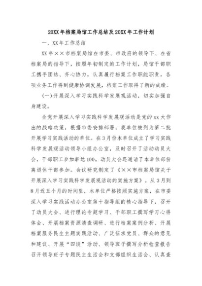 【七哥公文】2024年:20XX年档案局馆工作总结及 20XX 年工作计划+更多免费公文+VX:QiGeGongWen2024