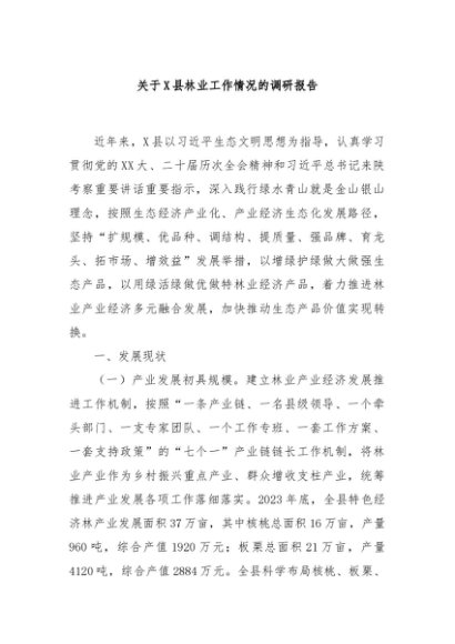 / 【七哥公文】2024年:关于X县林业工作情况的调研报告+更多免费公文+VX:QiGeGongWen2024