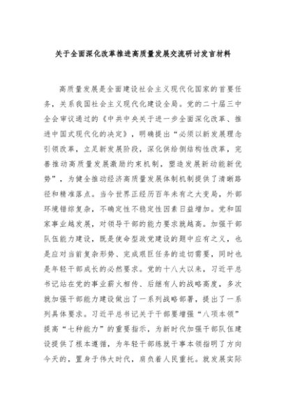 / 【七哥公文】2024年:关于全面深化改革推进高质量发展交流研讨发言材料+更多免费公文+VX:QiGeGongWen2024