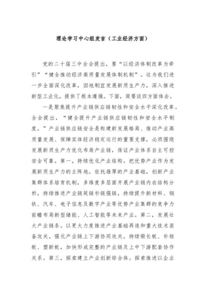 / 【七哥公文】2024年:理论学习中心组发言(工业经济方面)+更多免费公文+VX:QiGeGongWen2024
