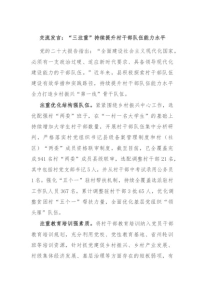 / 【七哥公文】2024年:交流发言:“三注重”持续提升村干部队伍能力水平+更多免费公文+VX:QiGeGongWen2024