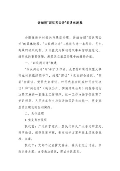 / 【七哥公文】2024年:详细版四议两公开的具体流程+更多免费公文+VX:QiGeGongWen2024
