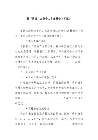 / 【七哥公文】2024年:村“两委”主任个人自查报告(简版)+更多免费公文+VX:QiGeGongWen2024