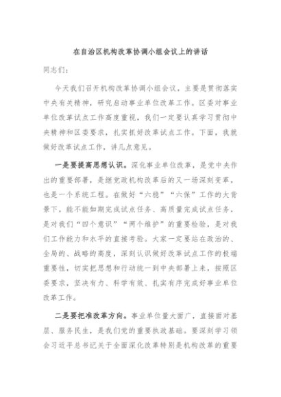 / 【七哥公文】2024年:在自治区机构改革协调小组会议上的讲话+更多免费公文+VX:QiGeGongWen2024