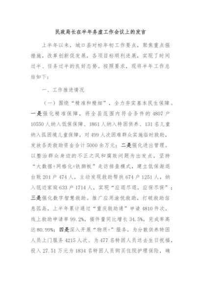 / 【七哥公文】2024年:民政局长在半年务虚工作会议上的发言+更多免费公文+VX:QiGeGongWen2024