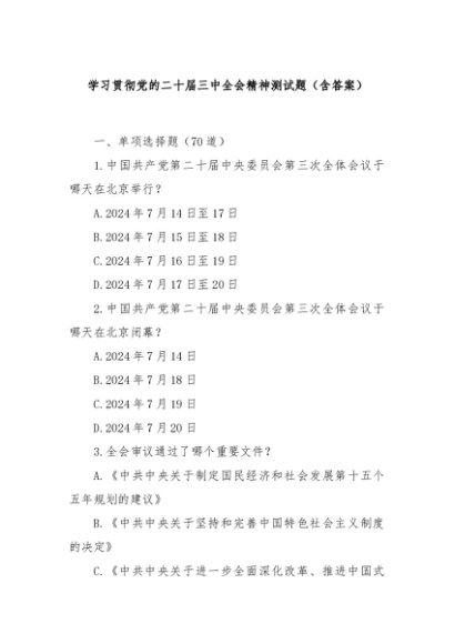 / 【七哥公文】2024年:学习贯彻党的二十届三中全会精神测试题(含答案)+更多免费公文+VX:QiGeGongWen2024
