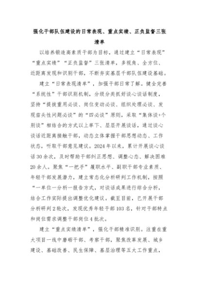 【七哥公文】2024年:强化干部队伍建设的日常表现、重点实绩、正负监督三张清单+更多免费公文+VX:QiGeGongWen2024