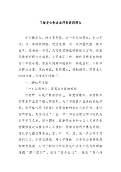 / 【七哥公文】2024年:卫健委体制改革科长述职报告+更多免费公文+VX:QiGeGongWen2024