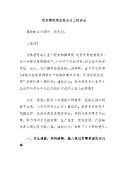 / 【七哥公文】2024年:在党建联建主题活动上的讲话+更多免费公文+VX:QiGeGongWen2024