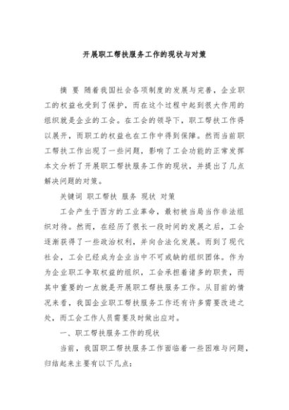 【七哥公文】2024年:开展职工帮扶服务工作的现状与对策+更多免费公文+VX:QiGeGongWen2024