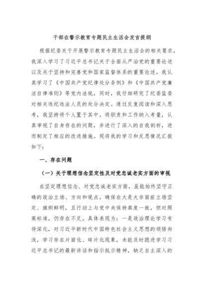 / 【七哥公文】2024年:干部在警示教育专题民主生活会发言提纲+更多免费公文+VX:QiGeGongWen2024