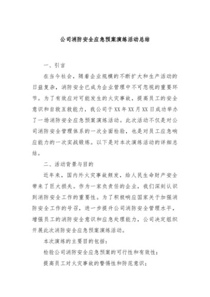 / 【七哥公文】2024年:公司消防安全应急预案演练活动总结+更多免费公文+VX:QiGeGongWen2024