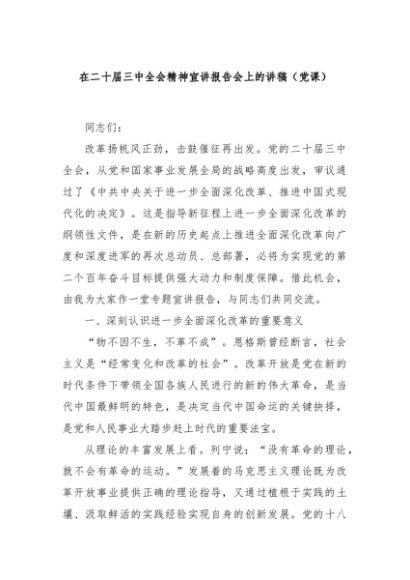 / 【七哥公文】2024年:在二十届三中全会精神宣讲报告会上的讲稿(党课)+更多免费公文+VX:QiGeGongWen2024