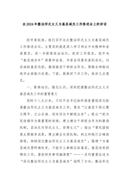 【七哥公文】2024年:在2024年整治形式主义为基层减负工作推进会上的讲话+更多免费公文+VX:QiGeGongWen2024