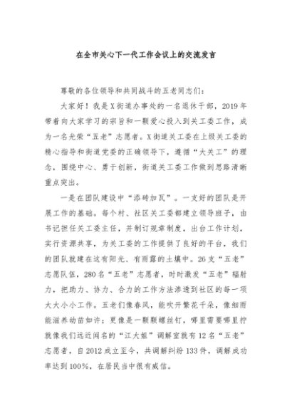 / 【七哥公文】2024年:在全市关心下一代工作会议上的交流发言+更多免费公文+VX:QiGeGongWen2024