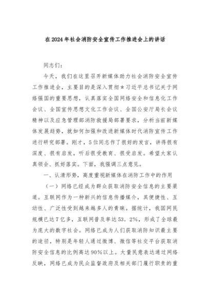/ 【七哥公文】2024年:在2024年社会消防安全宣传工作推进会上的讲话+更多免费公文+VX:QiGeGongWen2024