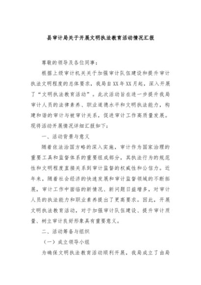 / 【七哥公文】2024年:县审计局关于开展文明执法教育活动情况汇报+更多免费公文+VX:QiGeGongWen2024