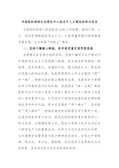 / 【七哥公文】2024年:市委组织部部长在理论中心组关于人才建设的研讨发言+更多免费公文+VX:QiGeGongWen2024